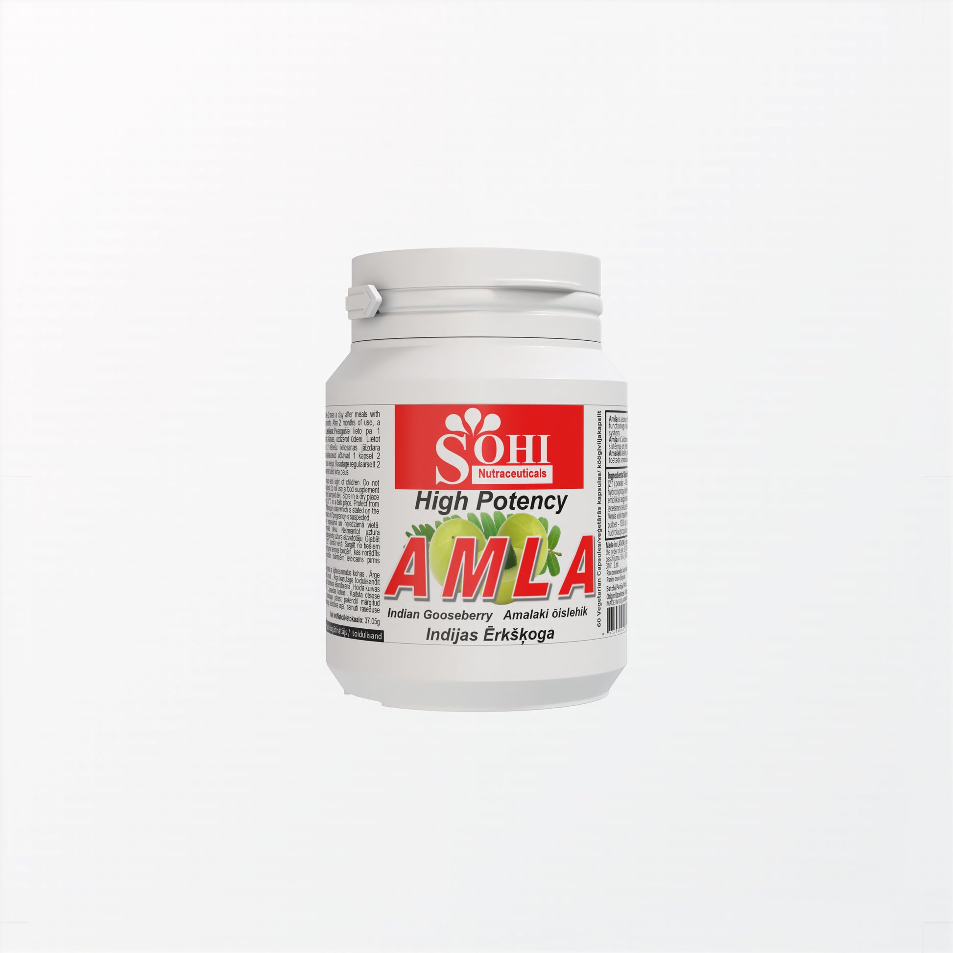 Amla or medicinal emblica fruit extract (2:1) powder – 1000 mg; vegetable cellulose capsule hydroxypropylmethylcellulose.